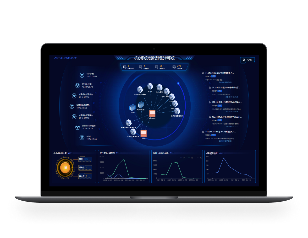 攻擊欺騙誘捕防御系統(tǒng)基于網(wǎng)絡(luò)欺騙和主動(dòng)防御理論,通過蜜罐、蜜餌等構(gòu)建沉浸式誘捕蜜網(wǎng),混淆攻擊視聽,增加攻擊代價(jià),達(dá)到延緩攻擊進(jìn)程,進(jìn)而保護(hù)用戶資產(chǎn)的目的