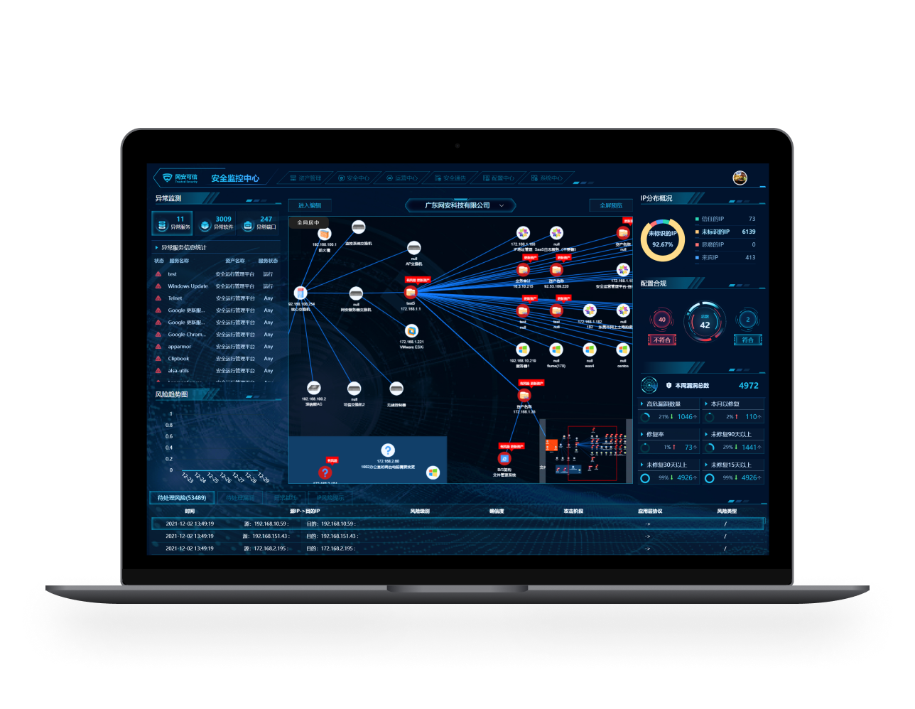 安全運(yùn)營(yíng)管理平臺(tái)是集資產(chǎn)管理、IP管理、資產(chǎn)處置、基線管理、風(fēng)險(xiǎn)管理、漏洞管理、安全通告、運(yùn)營(yíng)中心于一體的系統(tǒng),在平臺(tái)上解決技術(shù)人員、業(yè)務(wù)人員、管理人在資產(chǎn)管理、項(xiàng)目管理、安全運(yùn)維、運(yùn)維巡檢等工作問題